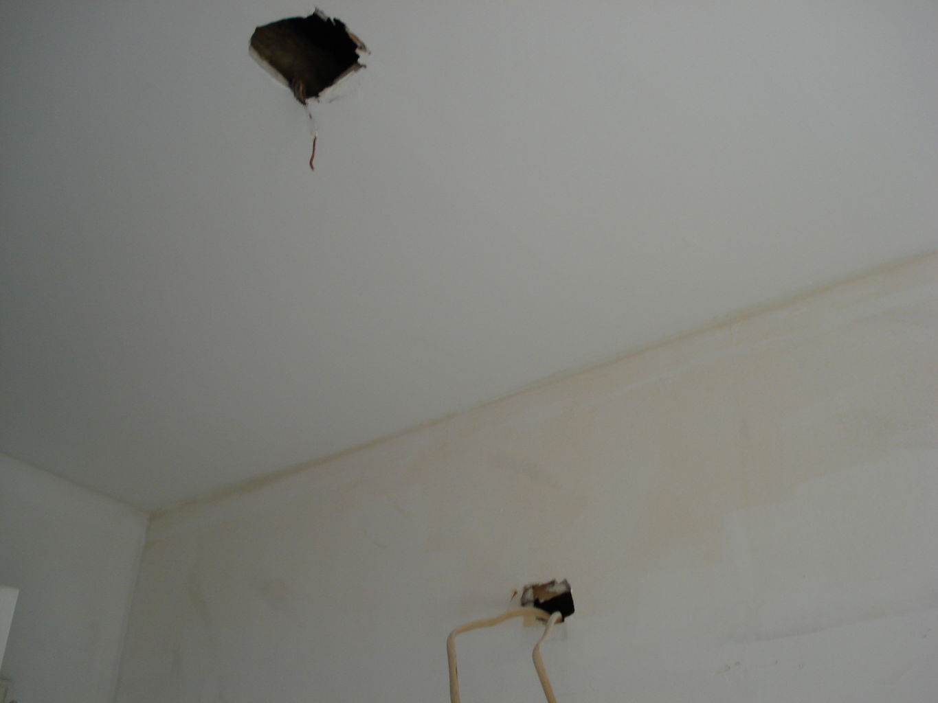 You can see that the walls and ceiling have been primed, so they're ready to be painted or tiled. You can also see where the light fixtures will go. Also, the vanity has been installed. Notice how the bathroom door now opens all the way to allow for easy entrance and exit!